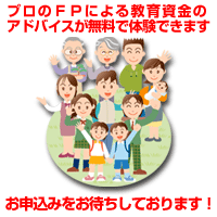 また、多数のFP(ファイナンシャルプランナー)が在籍しておりますので、教育資金のご相談だけではなく、家計全般(住宅ローン・教育資金・生命保険・医療保険・介護保険・老後資金など)に関するご相談をさせていただき、ご好評をいただいております。